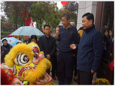 中國(guó)飛行試驗(yàn)研究院黨委書(shū)記宋躍進(jìn)(右二)和華原控股有限公司總裁魏進(jìn)民(右一)為舞獅點(diǎn)睛