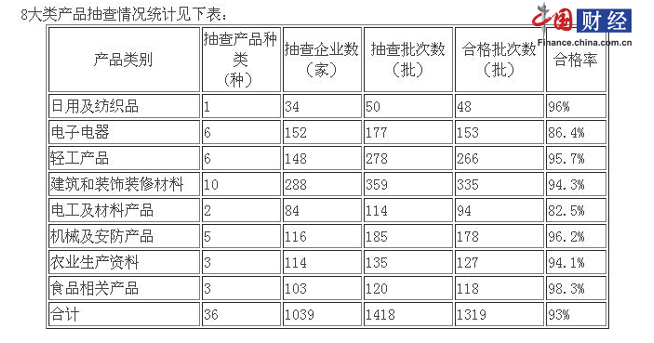 中國(guó)網(wǎng)財(cái)經(jīng)8月1日訊 陜西省質(zhì)量技術(shù)監(jiān)督局官網(wǎng)昨日發(fā)布消息,該局2017年上半年組織開(kāi)展了日用及紡織品、電子電器、輕工產(chǎn)品、建筑和裝飾裝修材料、機(jī)械及安防、電工及材料、農(nóng)業(yè)生產(chǎn)資料、食品相關(guān)產(chǎn)品等8大類(lèi)36種產(chǎn)品質(zhì)量監(jiān)督抽查。共抽查了1039家生產(chǎn)和經(jīng)銷(xiāo)企業(yè)的1418批次樣品,經(jīng)檢驗(yàn),合格企業(yè)946家,合格樣品1319批次,產(chǎn)品總體抽查合格率為93%。